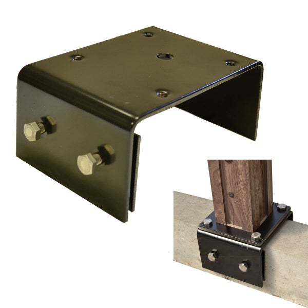 アルミボーダーフェンス用のポール(支柱)を15cmブロック上に建てる場合に利用する金具です。