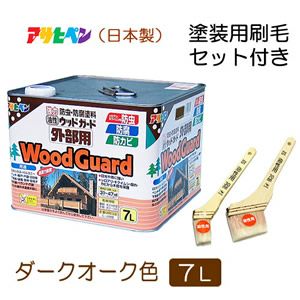 ☆お手入れセット☆ ウッドガード外部用 【7リットル】  (ダークオーク色) + 塗装用刷毛2本セット ≪※廃番 再入荷はありません≫