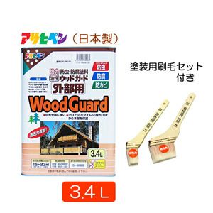 3. ☆お手入れセット☆ ウッドガード外部用 【3.4リットル】  (透明色) + 塗装用刷毛2本セット ≪※廃番 再入荷はありません≫