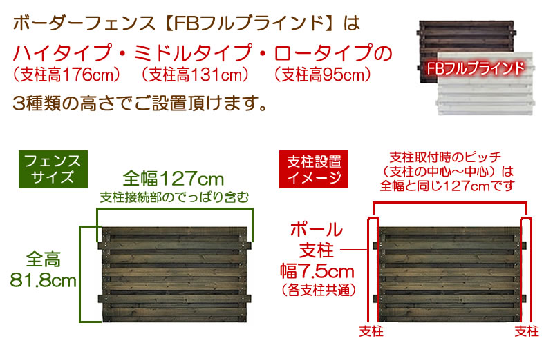 ■ 商品内容 : ボーダーフェンス 【FBフルブラインド】 ミドルタイプ 延長セット(1面分) 平地設置用