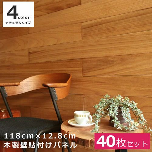 DIYで壁面に簡単張り付け! カフェスタイルパネル <ナチュラル> 118×12.8cm 【40枚セット】