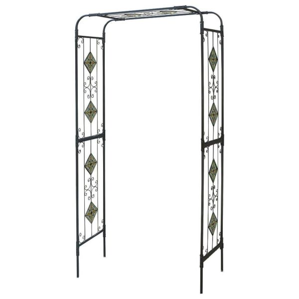 連結自在なアイアントレリス 「IBフェンス ローズパネル 【モザイク】 」 で構成された、美しいガーデンアーチです。
