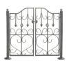 3. モダンエクステリアフェンス ゲートセット(両開き平地用) [ハンマートーン仕上げシルバー]