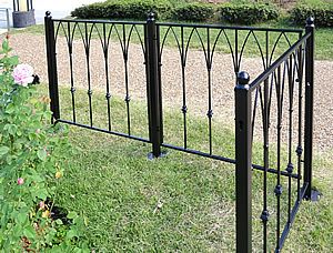 タテ格子の間隔が広めの、開放的な印象のアイアンフェンスです。欧州風のエッセンスを取り入れつつ、どんなお家や庭にも似合う汎用性の高いデザインとなっています。
