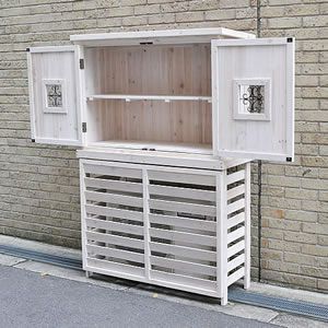 シンプルなベーシックデザインの大型木製エアコン室外機カバーと、上部用収納庫のお得なセット商品です。