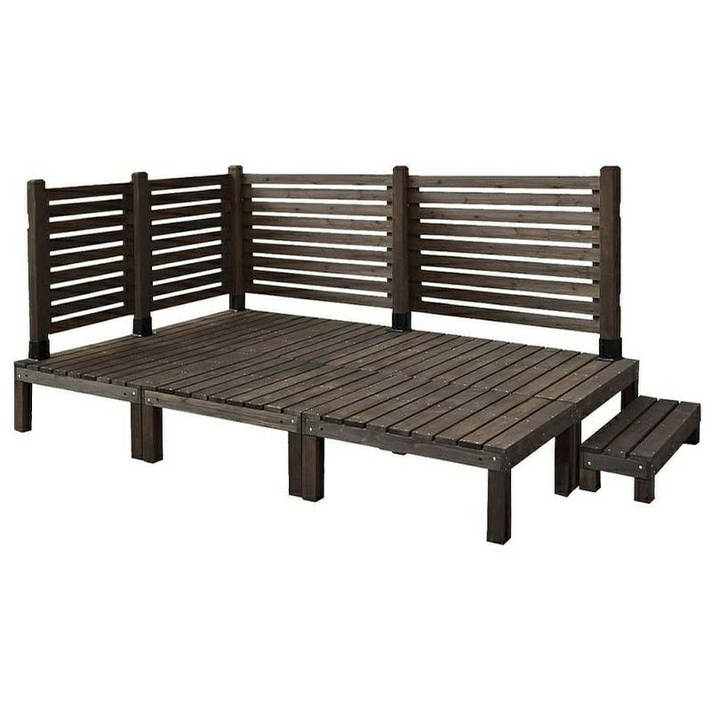 【材質】 (デッキ・フェンス・ポール) 杉天然木(ステイン塗装) (平地金具) スチール(粉体塗装(ブラック))