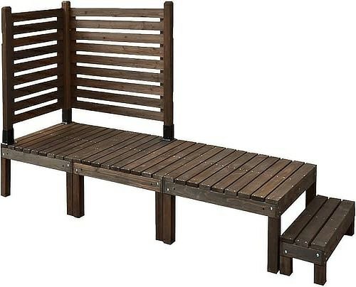 こちらは90×90cmのデッキ3台にステップ台、72cm幅と120cm幅のフェンスが1枚づつのセットです。ウッドデッキ・ステップ・フェンス・ポール・金具が一式揃ったフル装備のセット内容となっております。