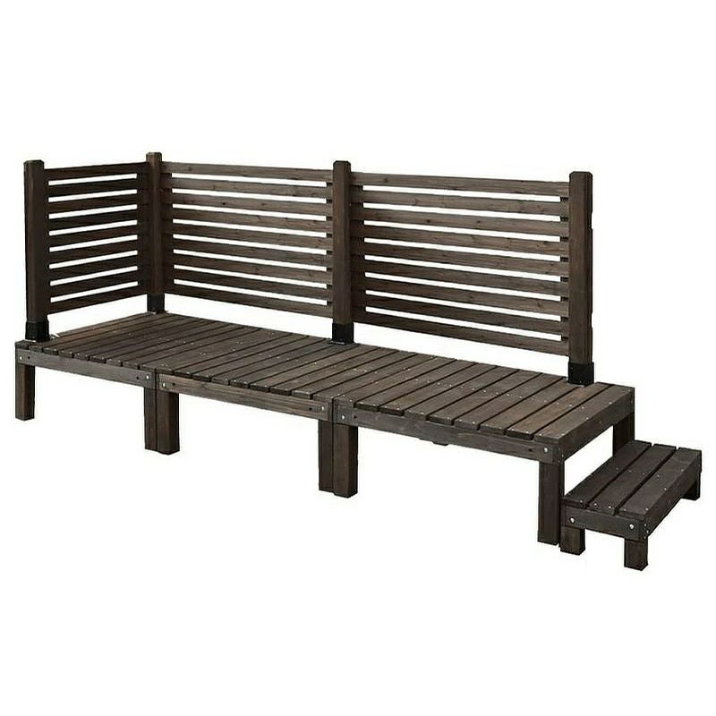 【商品内容】90×90cmウッドデッキ3台、ステップ台、フェンス(120cm幅)×2、フェンス(72cm幅)×1、ポール(ストレート用)×2、ポール(コーナー用)×1、ポール固定用平地金具×3、ネジ類