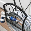 お庭にそぐわない乱雑な印象のホースも、専用ハンガーに掛ければスッキリ収納。便利なスタンド式です。