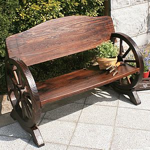天然木のウッディ感を強調した、ウッディな仕上がりが大好評。車輪風の手すりがカントリー感抜群!お庭の雰囲気が置くだけで一変します!ゆったり座れる二人掛けタイプ。