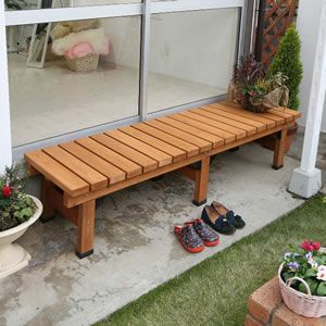細長いタイプの大型縁台。明るくウッディな色合い。