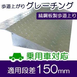 縞鋼板製歩道上がり 長さ100cm × 対応高15cm 乗用車用 (段差解消スロープ)