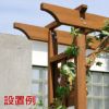 存在感バツグンの大型木製アーチです。側面はトレリス状になっているので、植物を誘引しやすく、またハンギング系のプランター・デコレーションの飾付けも楽しめます。