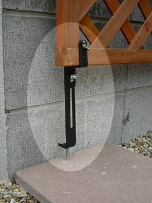 コンクリートフェンス用の下部用金具の使用方法でございますが、金具とラティスは固定いたしますが、既存フェンスとは固定いたしません。コンクリートフェンス上部用金具で既存フェンスと挟み付ける形で固定したラティスを、床面からの高さを調整して支えるのが目的でございます。そのため、既存フェンスの材質は特に問いません。