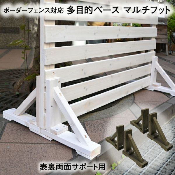 木製フェンス自立用マルチフット 4個一組 両面サポートセット (フェンス両側の左右に取り付け)
