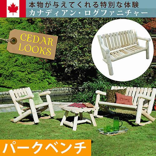 カナダのノーザンホワイトシダー専門木工家具メーカーCedar Looksからの直輸入、パークベンチです。北米大陸東北部に自生する上質な天然杉丸太で造られており、ワイルドな風合いが自然にマッチします。ホワイトシダー独自の抗菌作用で害虫が付きにくく、腐りにくいのが特徴です。天然杉丸太材の質感を充分に味わって戴くために、ナチュラル(無塗装品)でお届け致します。年月が経てば、やがてシルバーグレーに変化します。塗装を施せば耐久性がさらにアップし、カラフルな表情も楽しめます。(塗装は市販の屋外木部用ステイン系塗料をご使用下さい)
