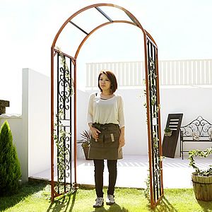 お庭の雰囲気に調和する木目調の塗装をほどこしたフレームが特徴。トレリス側板のブラックとのツートンカラーがとってもおしゃれです!
