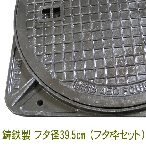 乗用車対応マンホール フタ直径395mm 【フタ・枠セット】 丈夫な鋳鉄製(直径35cmの穴に対応)