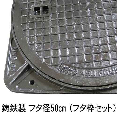 中型トラック車対応マンホール フタ直径50cm 【フタ・枠セット】 丈夫な鋳鉄製(直径45cmの穴に対応)