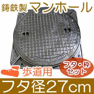 歩道用マンホール フタ直径27cm 【フタ・枠セット】 丈夫な鋳鉄製(直径24cmの穴に対応)≪※販売終了しました(メーカー廃番)≫