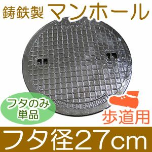 歩道用マンホール 【フタのみ単品】 フタ直径27cm 丈夫な鋳鉄製(直径24cmの穴に対応) ≪※販売終了しました(メーカー廃番)≫