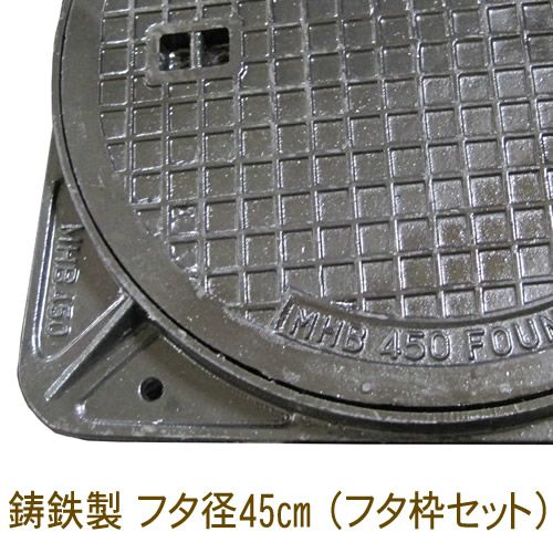 歩道用マンホール フタ直径45cm 【フタ・枠セット】 丈夫な鋳鉄製(直径39.5cmの穴に対応)