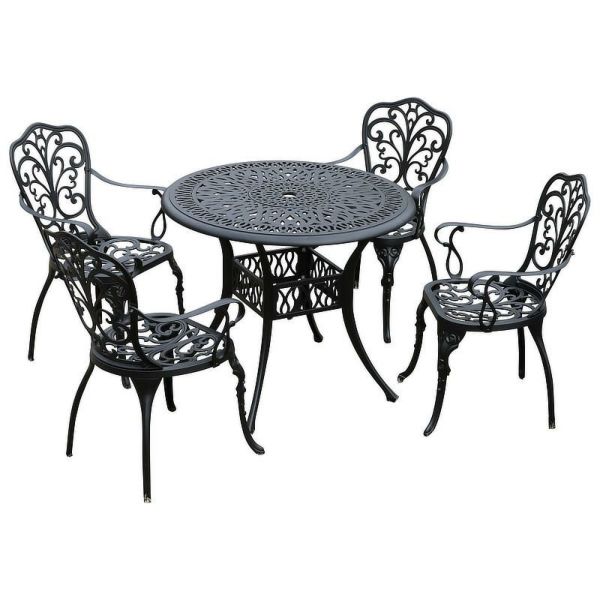 円形テーブルを囲む、本格的で、お得なガーデンセットです。