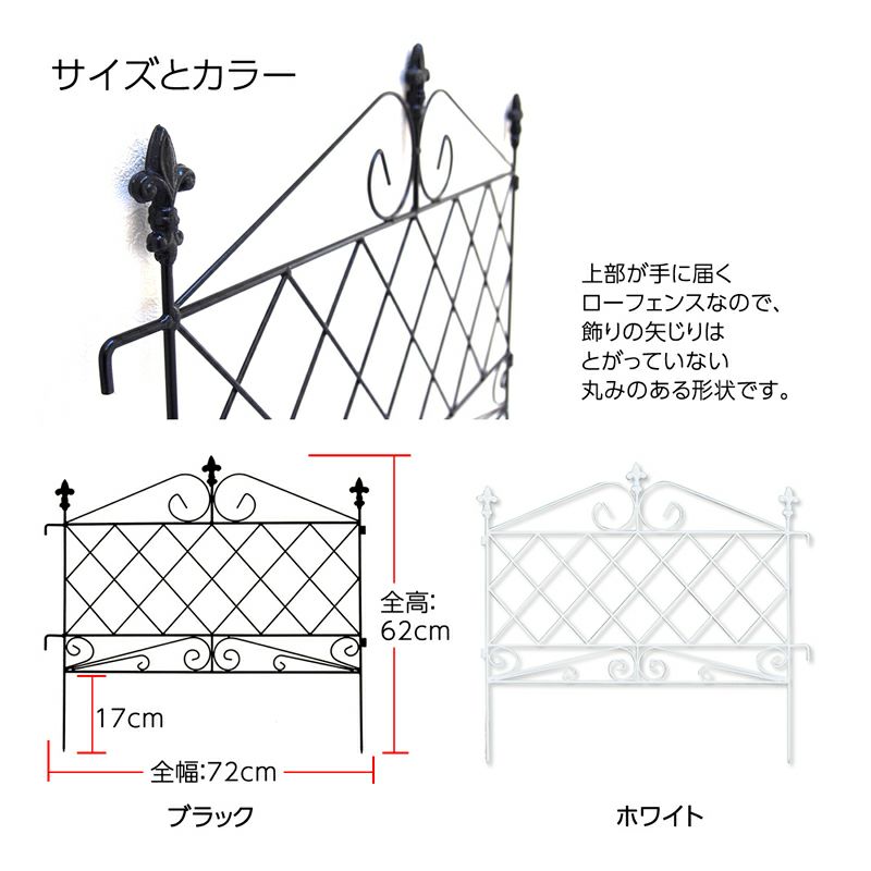 他の画像を見る ★お手軽なのに本格派!おトクな5枚組★ ゴージャスアイアン ローフェンス (5枚セット) ¥ 19,500 税込 地面にさすだけ簡単設置!連結もラクラクな大人気フェンスです。 カートに入れる お気に入りに登録する