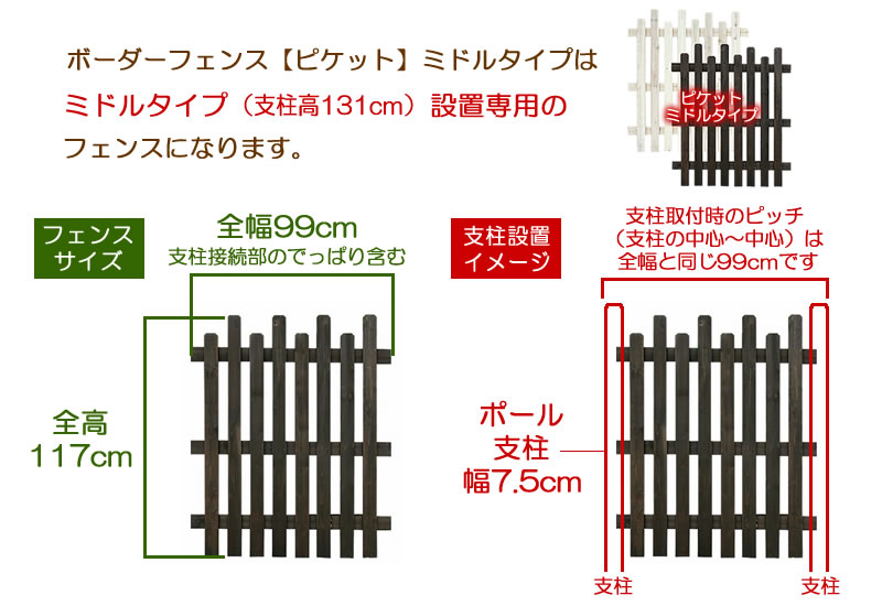 ■ 商品内容 : ボーダーフェンス【ピケット】 (ミドルタイプ)   延長セット(1面分) 土の地面設置用