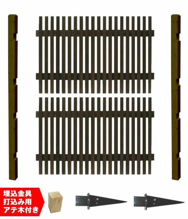 【基本】ボーダーフェンス 和モダン ハイタイプ 埋込金具 基本セット  [杉天然木フェンス]
