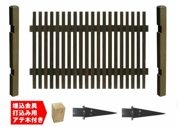 【基本】ボーダーフェンス 和モダン ロータイプ 埋込金具 基本セット  [杉天然木フェンス]