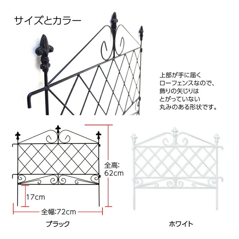 花壇まわりのミニフェンスから、大き目で敷地囲いに使えるものまで、サイズは色々。
