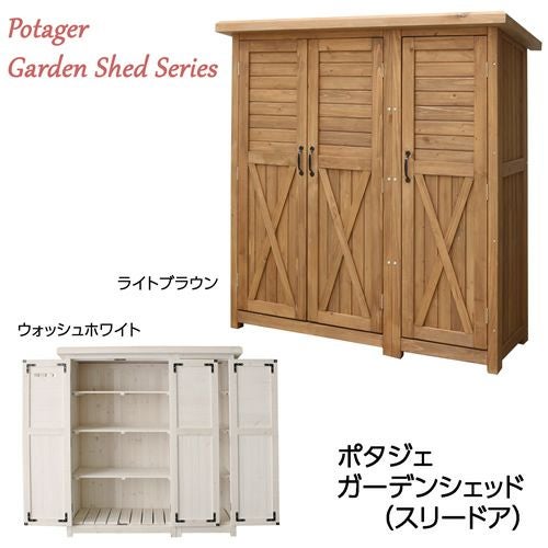 他の画像を見る ★使い勝手と機能性、そして大容量の一挙両得!★ ポタジェ ガーデンシェッド 【スリードア】 - 使い勝手を追求した、大容量収納庫です! ¥ 102,000 税込 在庫切れ 便利で大容量!機能的な三つ扉収納庫です。 カートに入れる お気に入りに登録する