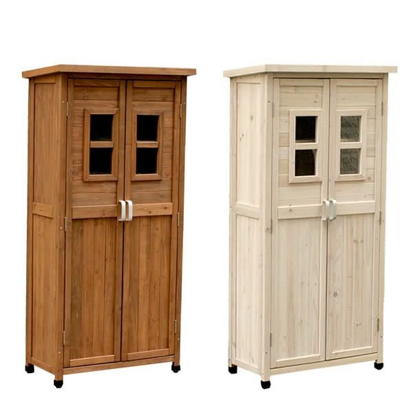 長ものが収納できる、ベランダ仕様のチャーミングな木製収納庫!