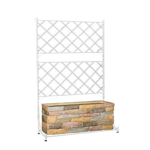 扱いやすい高さのベース(土台)付きトレリスフェンス。下部のベースに、重厚感のあるプランターを乗せれば、一層安定!