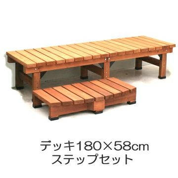 ■ 商品内容 : デッキ風縁台 ストロング・シリーズの (1)180×58cmサイズ 1台 (2)ステップ 1台