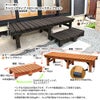天板の厚さはなんと35mm。そして筋交部分の補強金具は金属製!どっしり頑丈な杉天然木製のデッキ風縁台。