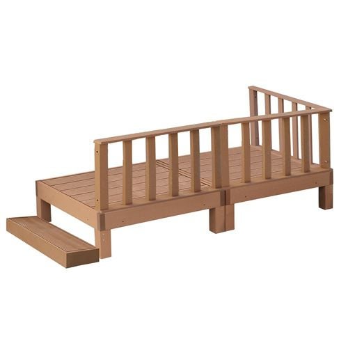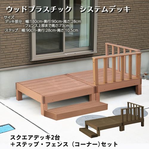 他の画像を見る ★選べる2色(ライトブラウン/ダークブラウン)★ 天然木のような風合い!ウッドプラスチック システムデッキ スクエアデッキ2台・ステップ+フェンス(ストレート+コーナー)セット ¥ 56,500 税込 丈夫で長持ち、手間いらずの人工木デッキ カートに入れる お気に入りに登録する