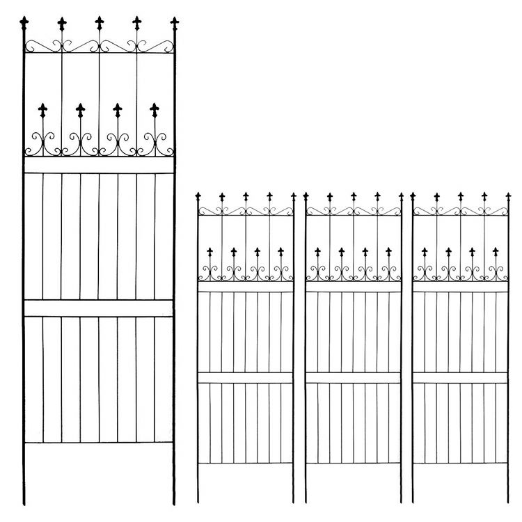 他の画像を見る ★小さ目梱包でお届けします★ アイアンフェンス ヌーヴォー 全高220cmタイプ 【コンパクト分割タイプ】 4枚組 ¥ 24,900 税込 なるべくお安くご提供するため、従来品よりも分割箇所を1段増やして、小さ目の梱包で発送できるよう改良しました! カートに入れる お気に入りに登録する