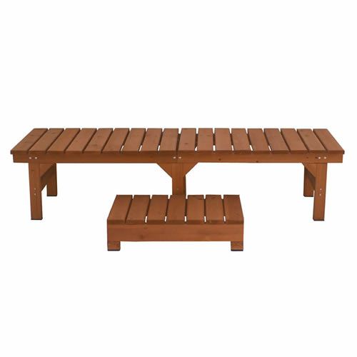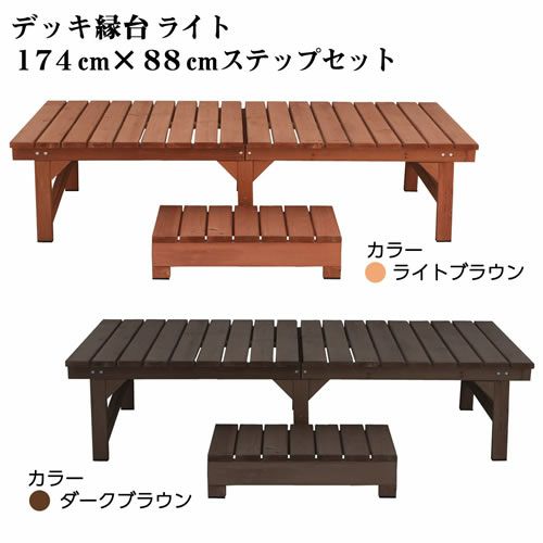 他の画像を見る ★選べる2色(ライトブラウン/ダークブラウン)★ デッキ風縁台 【ライト】 174×55cmサイズ(高さ 40cm) & ステップ セット <お得なデッキ+ステップセット> ¥ 25,200 税込 サイズバリエーションが豊富な木製縁台シリーズ登場! カートに入れる お気に入りに登録する
